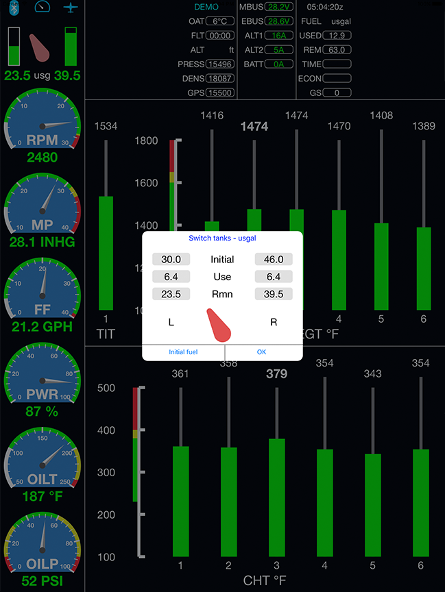 BlueMAX enables you to track the contents of each fuel tank in flight. It will prompt you to switch tanks when the imbalance between sides requires it.